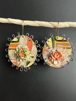 Wonderful vintage tin in large oblongs. I’ve embellished them with pale floral decals which create a nice backdrop for the focals to pop against.